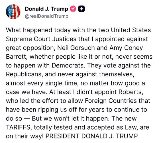 Trump types a condolence Truth and signs it "President Donald J Trump"