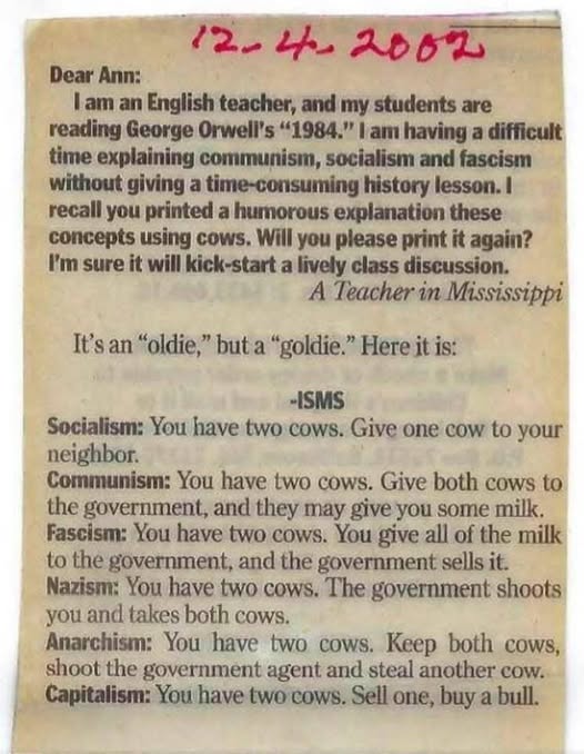 🤠 the differences among socialism, fascism, communism, & capitalism: "Cowboy Style"