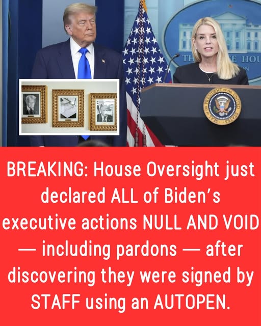 BREAKING: The HOUSE OVERSIGHT COMMITTEE just declared ALL of Biden’s executive actions NULL AND VOID — including pardons — after confirming they were signed by STAFF using an AUTOPEN.