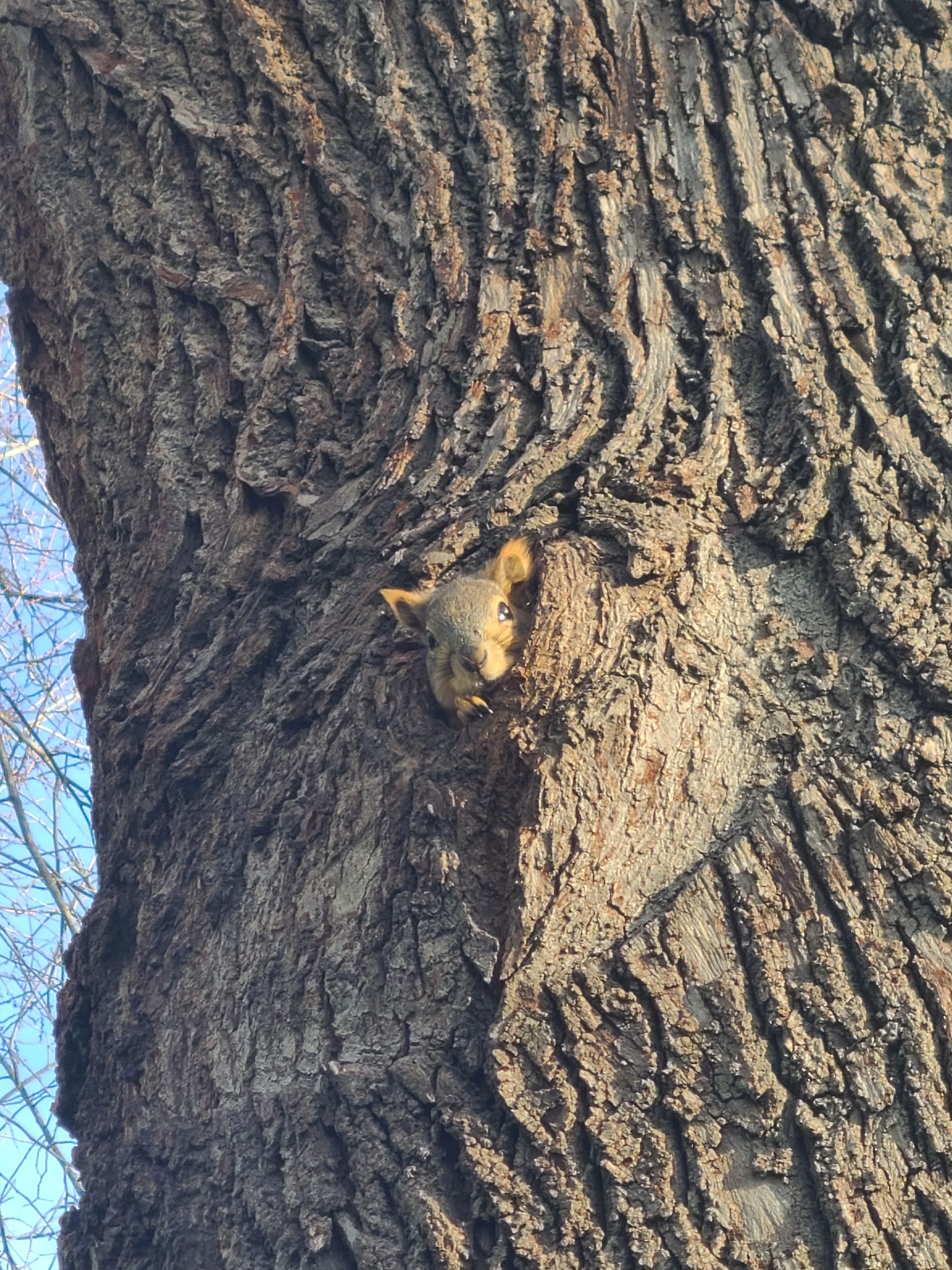 Took a few tries, but managed to toss a walnut directly into Wally's dwelling. The rest of the walnuts are scattered along the base of the tree trunk. 😁