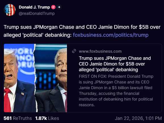 President Trump's Power move - Trump sued JPM and Jamie Dimon gets sued for $5B!🔥 💪