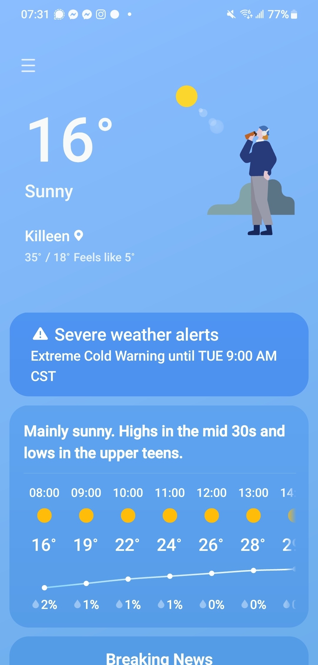 Coffee. Hot Weather check. Following that Penguin. Chilly Willy on the GO!