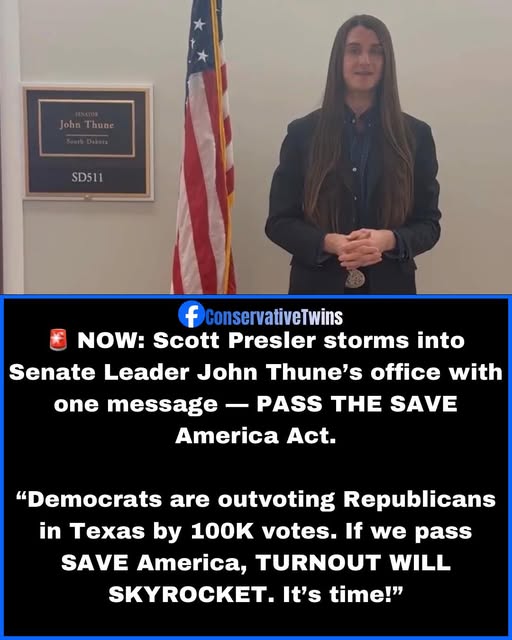 Scott Presler just showed up at Senate Leader John Thune’s office demanding action on the SAVE America Act.