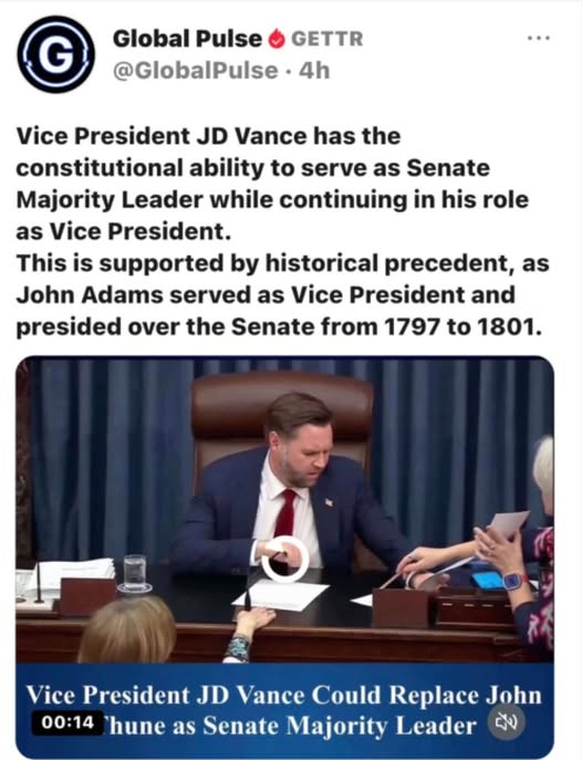 JD Vance should replace John Thune as Senate Majority Leader.