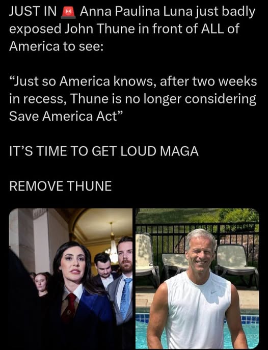 🚨 Anna Paulina Luna just badly exposed John Thune in front of ALL of America to see: