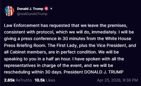 SHOTS FIRED AT WH CORRESPONDENT DINNER